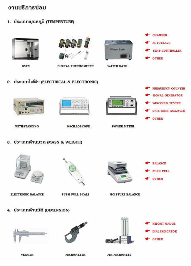 ISOCAL TECHNOLOGY ให้บริการงานซ่อมอุปกรณ์ประเภทต่าง ๆ ดังนี้